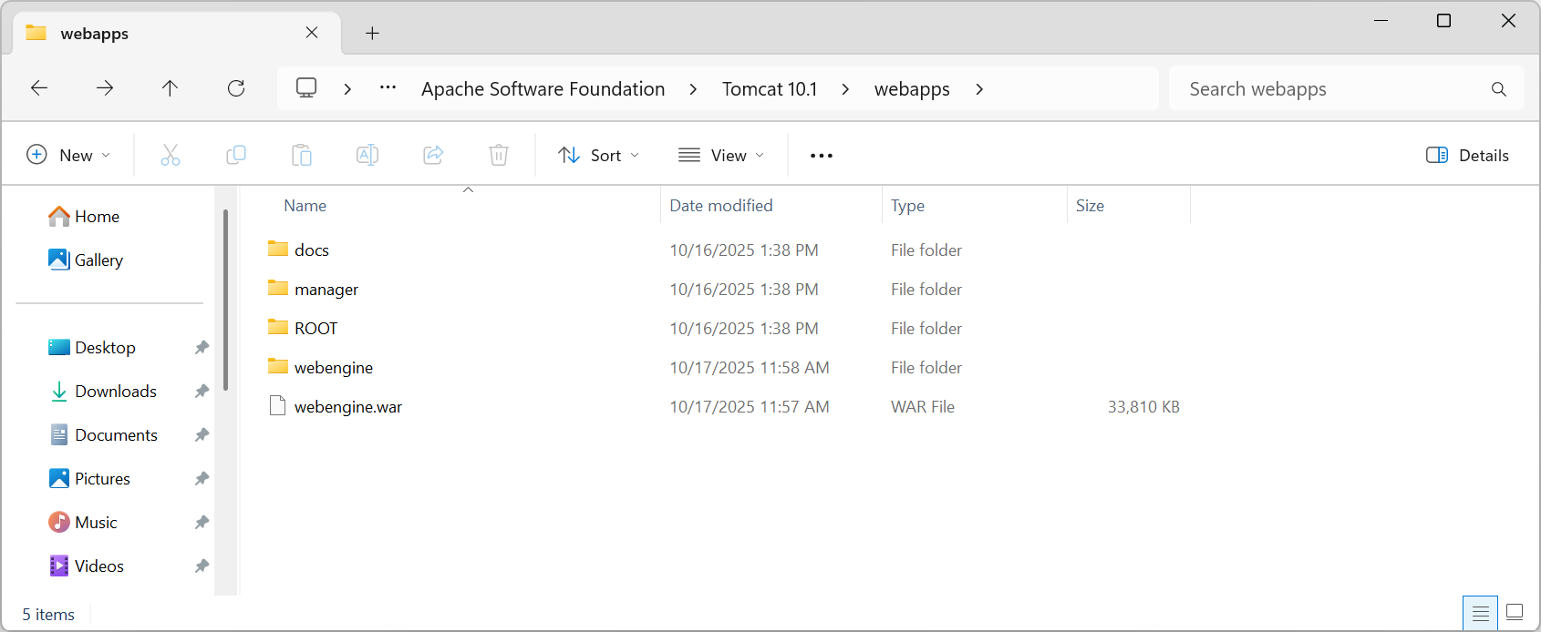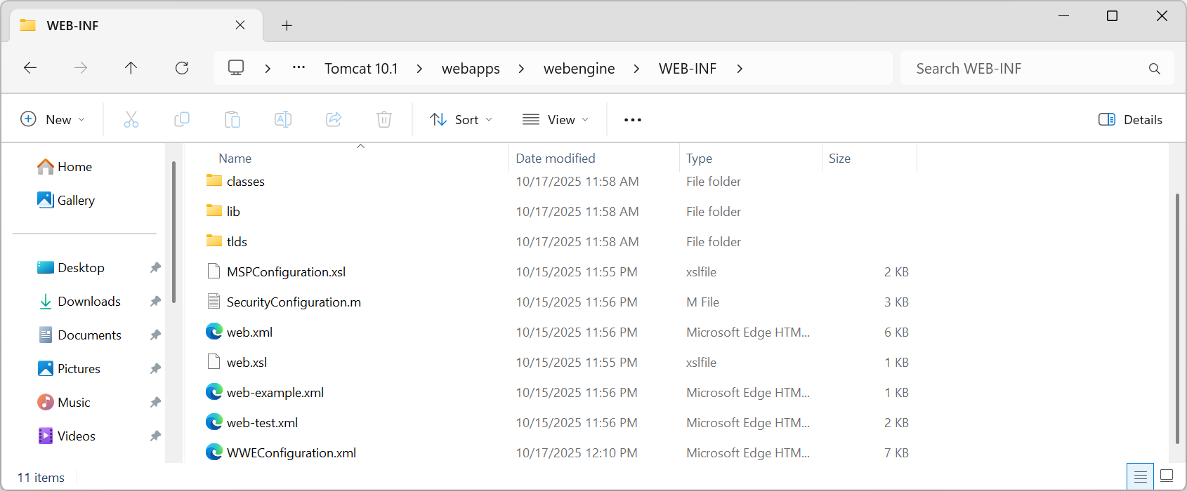 - Browse to C:\Program Files\Apache Software Foundation\Tomcat 10.1\webapps\webengine\WEB-INF.