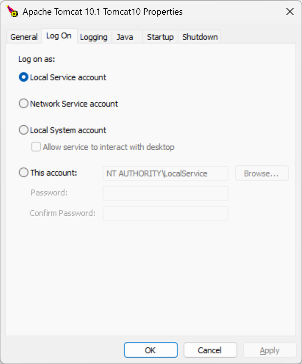 It is recommended that you create a dedicated user account to run the Tomcat server, typically called “tomcat”.
