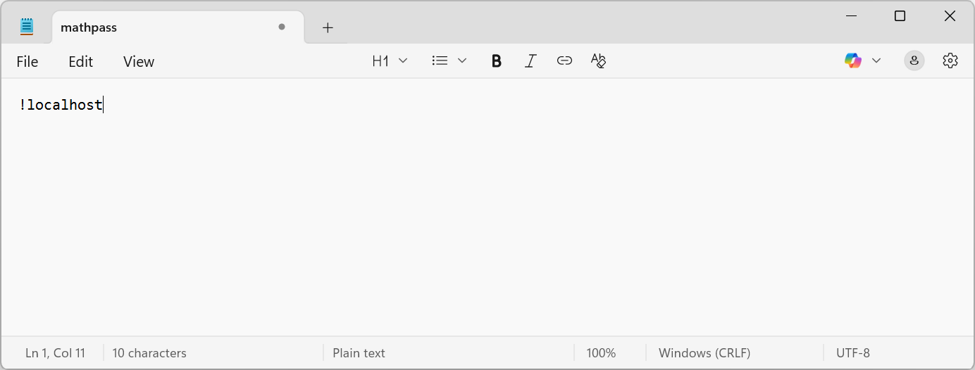 - Enter an exclamation mark followed by the hostname or IP address of your MathLM server.