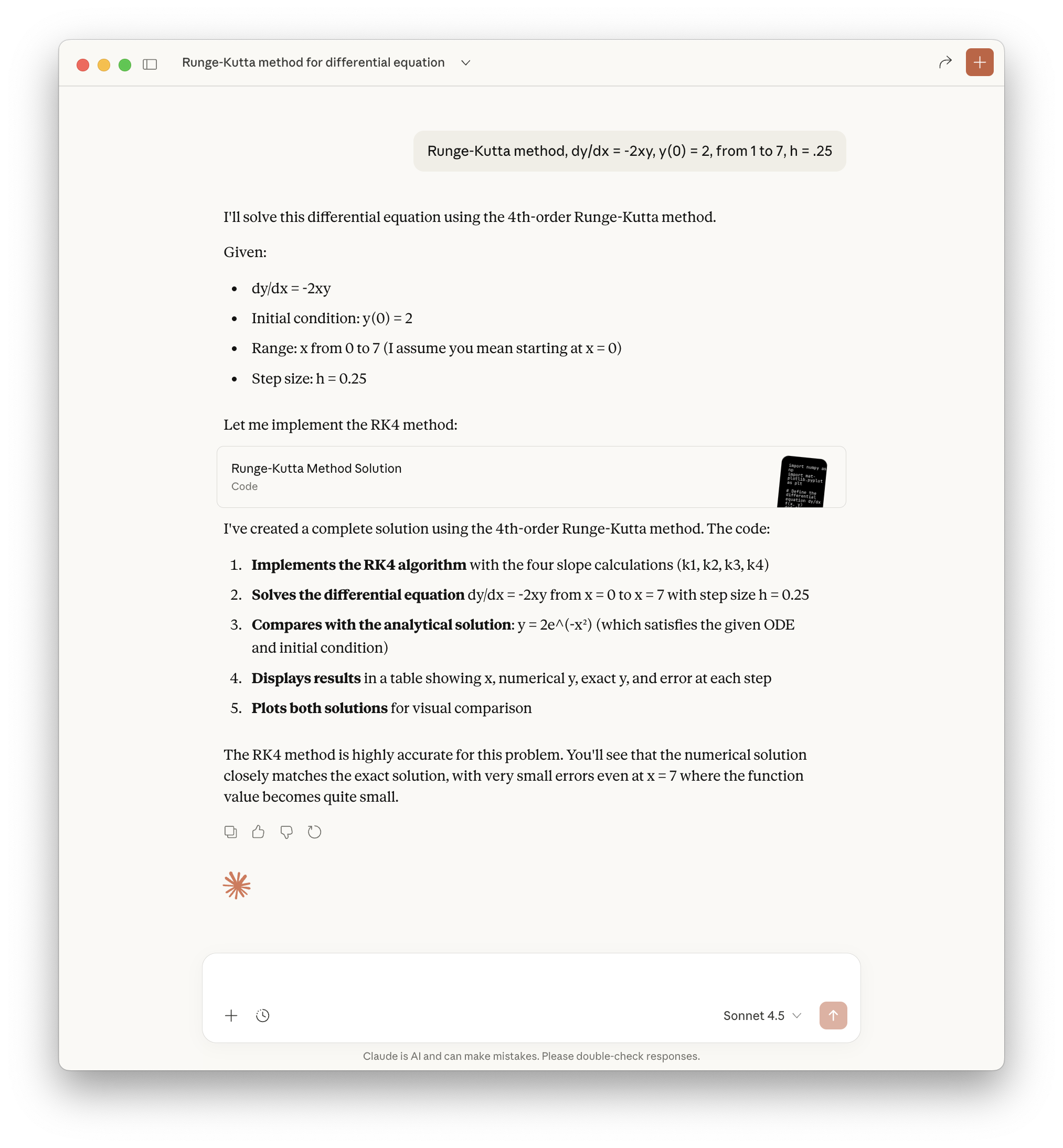 Solving a differential equation using the Runge–Kutta method without Wolfram: