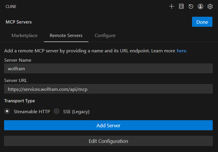The following information will be needed to configure your client to communicate with Wolfram MCP service. Use this in conjunction with the specific instructions for your chosen client below to enable access.